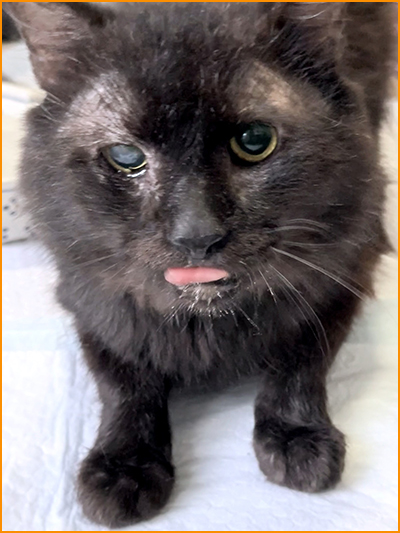 Captain finally started eating on his own and no more coughing and gagging. We are trying to save his eye and he may be going to TXVO in Fort Worth. He is a very sweet boy and allows us to give him all his antibiotics and eye meds.